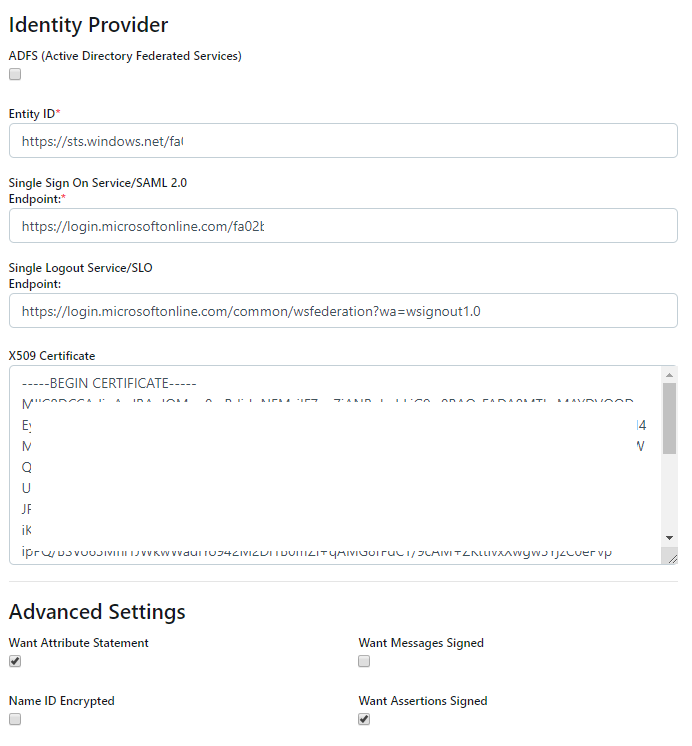 Open the Base64 certificate that was downloaded in the earlier step in a text editor. Copy the contents into the X509 Certificate setting in the Identity Provider section of the Kasm configuration