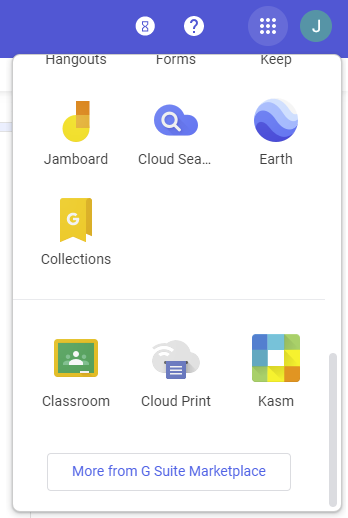From another browser, login to Google. Click the Google Apps icon in the top right corner. Scroll down and click Kasm. You should be logged into the Kasm UI Dashboard.