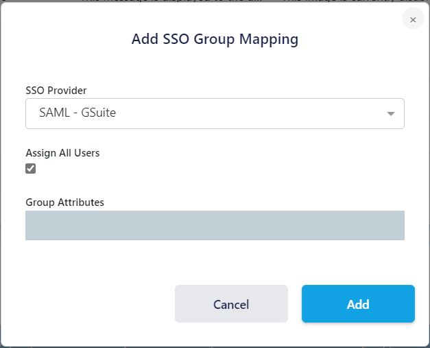 Select the SAML IDP that was created above e.g. “SAML - Gsuite” for the SSO Provider.