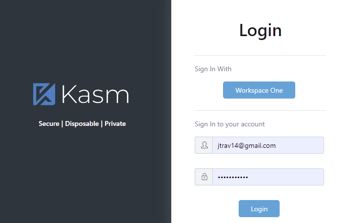 From another browser, login to Workspace ONE Access. Kasm should be displayed as an App. You may click the link to automatically open and log in to Kasm