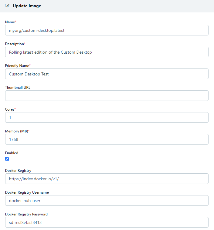 Test : Create a new Workspace and set the Docker image name, Docker Registry, and the Docker Registry Username and Password if authentication is used. Within a few minutes the Agents will pull down the Images from the defined registry. Assign the Image to a testing group, and verify the desired functionality.