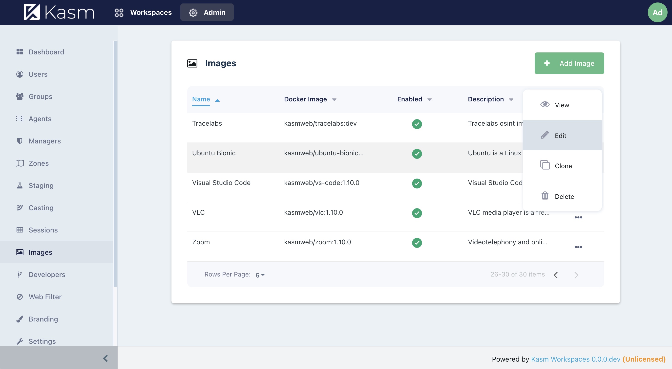 Enter the Kasm Workspaces Admin UI, select Workspaces. Edit the Workspace you want to run as root or create a new Workspace.