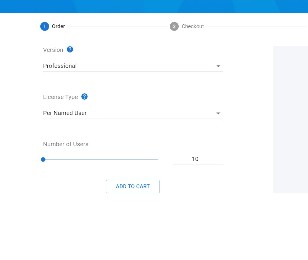 Select the Version, License Type and Numer of Users and click ADD TO CART