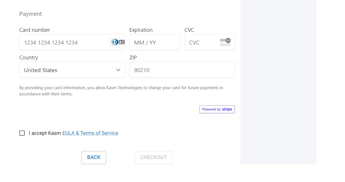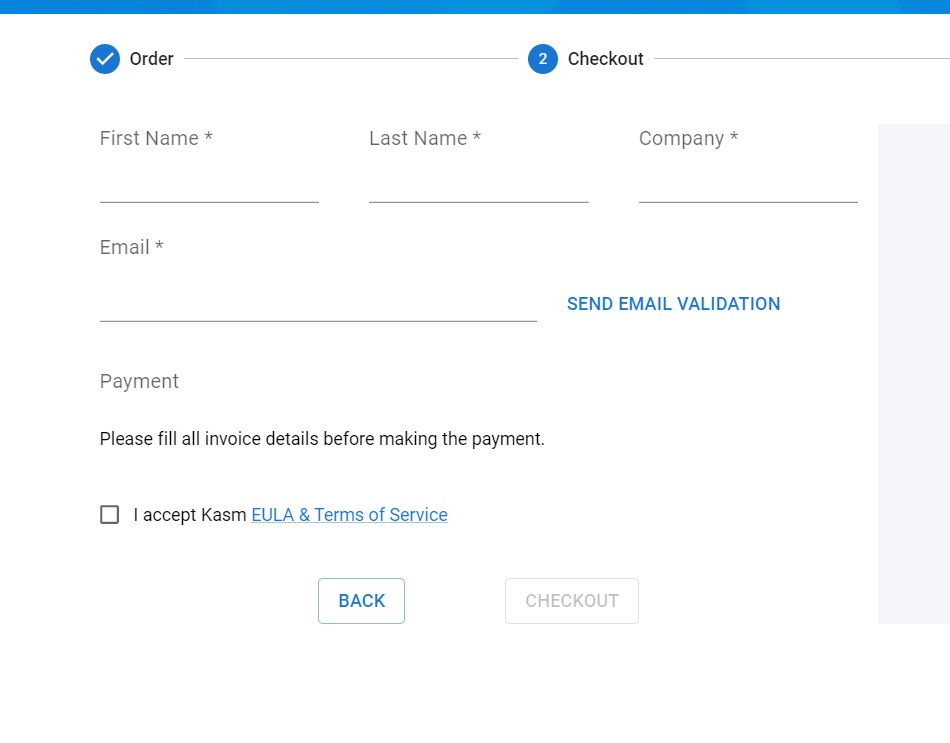 Enter your credit card information view and accept the EULA and click CHECKOUT