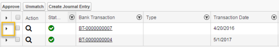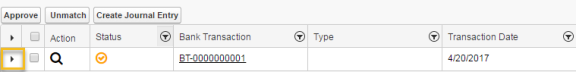 For the displayed bank transactions that have a Status field value of Fully Matched (denoted by a green dot with a check mark in it) or Approved (denoted by a black check mark), you do not have to take any further matching action. These bank transactions are exactly matched to source documents.
