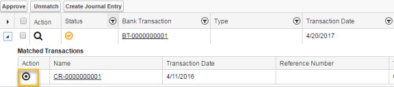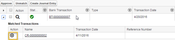 After you match bank transactions to source documents, you approve the matched transactions. To learn more, see Approve Matched Bank Transactions.