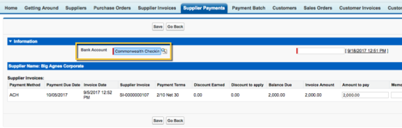 When you set up bank accounts in Kenandy, you can set defaults to save yourself time and data entry later on. For example, if you usually use one specific bank account to pay all your suppliers, you can set it as the default Disbursement Bank Account for your company. It will appear automatically on your supplier payments and refund credits.