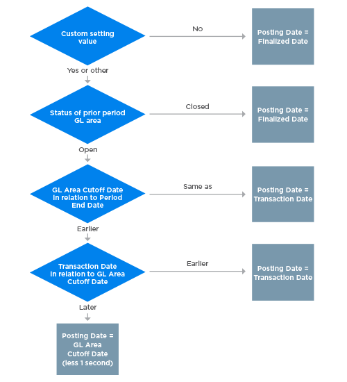 The posting date for the source document you selected changes to the earlier of the transaction date and time or the cutoff date and time (less one second) for the GL area. Also, the accounting entry, if any, for the associated transaction is automatically regenerated when the accounting batch job runs.