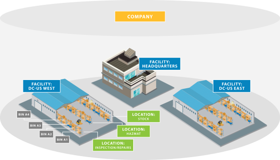 This picture shows how locations fit in with facilities in your Kenandy company structure: