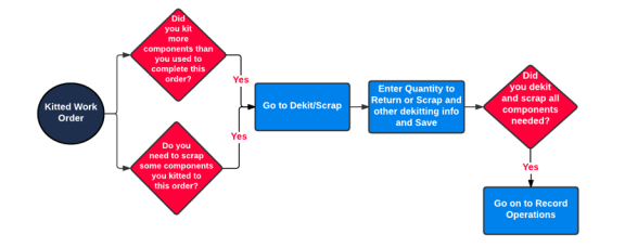 Note: If you find you're having to dekit/scrap a lot of kitted components, consider using backflush components instead of kit components to decrease the amount of record keeping you have to do.