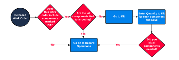 Important: You only kit components as follows if those components are not tied to routings. If your kit components are tied to routings, they won't appear on the Kit page. Remember to issue the components from WIP when you record operations. To learn more, see Record Operations on Work Orders.