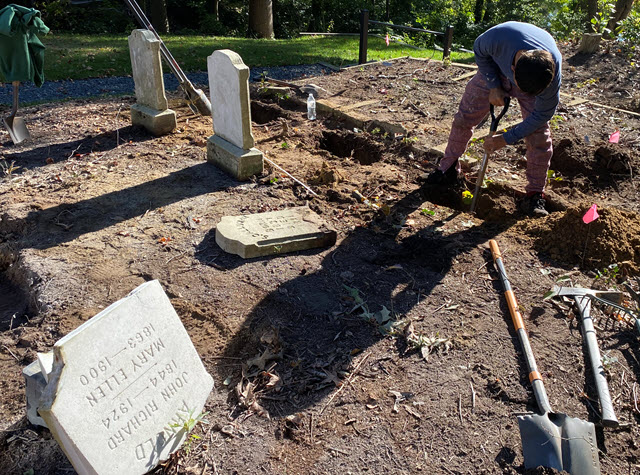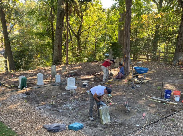 Eighteen months ago, the long-hidden Langley Cemetery was suffering from erosion and neglect. On October 11th, it underwent a transformation, with repairs to many of its grave structures, thanks to the support of the Trader Foundation for MD Burial Sites, which assists cemetery preservation and those engaged in such efforts, along with volunteer labor, donations, and loans.