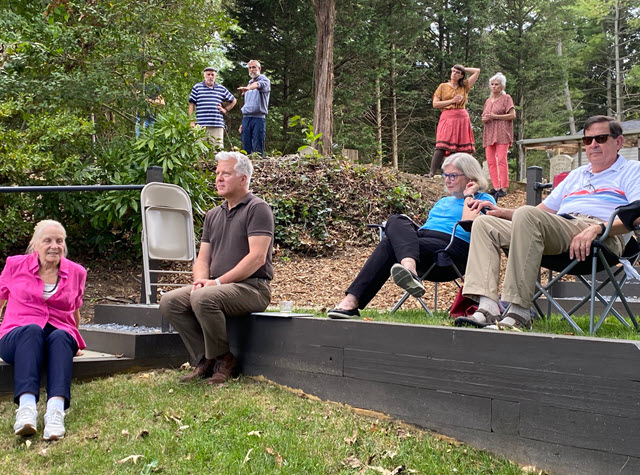Forty supporters of the Langley Cemetery gathered on September 25, 2022, to celebrate the grand reopening of the cemetery after a half century of neglect. Nearly a dozen Weisman family members, who are descendants of people buried in the cemetery, attended and posed by their ancestors graves with old paintings and photos of those long-departed. The property owner and President of the Langley Cemetery Association, Michael Replogle, rededicated and blessed the cemetery as protected ground for past burials and future inurnment of cremains. Anne Arundel County Executive Steuart Pittman, Anne Arundel Council Member Amanda Fiedler, and Maryland State Delegate Heather Bagnall each offered supportive remarks. Tim & Savannah Finch and the Eastman String Band warmed up the crowd with an hour of fine bluegrass music, including such tunes as “Dancing in the Graveyard”, “Long Black Veil”, and “Amazing Grace”.