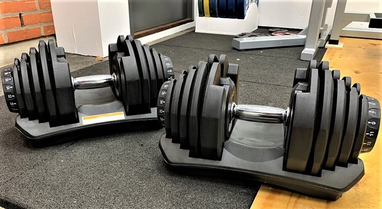 De är justerbara och tar därför mindre plats än om man har många olika hantlar i olika vikter.