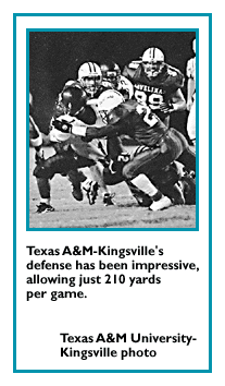 OVERVIEW: After being dominated for the past three seasons by North Alabama, Division II football has been turned upside down in 1996 -- then shaken side-to-side and tumbled down a steep hill. While the three-time defending champion Lions have struggled to a 5-4 record (through games of November 2), no fewer than six teams have lost after reaching the top spot in the weekly poll. As a result, the division is littered with strong teams that have one or two losses and are one bad game away from dropping out of playoff contention or one good game away from finding the momentum to win the title .... Texas A&M-Kingsville has reached the top of the poll despite losing two of its first three games. The Javelinas' defense solidified after a shaky start and was allowing just 210 yards per game, a good sign for a team that traditionally puts on an offensive show in the playoffs .... The two biggest surprises are Northwest Missouri State and Nebraska-Omaha. Northwest Missouri State, which has not appeared in the championship since 1989, averaged 42.2 points in winning its first nine games, but only two of its wins were against teams that have appeared in the top 20. Nebraska-Omaha, absent from the playoffs since 1984, overcame an early one-point loss to Mankato State to win its next six games and become a legitimate top-five team.