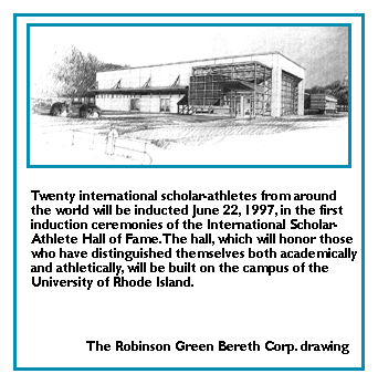 Twenty international scholar-athletes will be chosen for the hall of fame every two years, with the first induction ceremonies taking place June 22, 1997. That will coincide with the opening of the second World Scholar-Athlete Games, which will be conducted on the Rhode Island campus and in nearby Newport. The first World Scholar-Athlete Games in 1993 drew 1,600 teenagers from 109 countries.