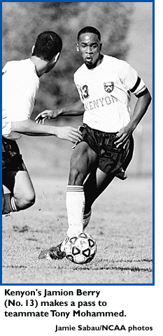 "It was a great, robust effort," said Kenyon coach Jack Detchon. "It was an absolutely terrific game. My players played outstandingly against a very good New Jersey team. It was a marvelous performance -- a performance separated by chance, a bit of luck and a brilliant save by their goalkeeper."