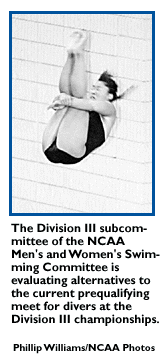 The Division III subcommittee of the NCAA Men's and Women's Swimming Committee has been asked to come up with a different way of selecting divers to the 1998 Division III championships.