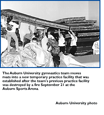On September 21, Auburn University's program was jolted when fire destroyed the team's practice facility at the Auburn Sports Arena. But two weeks later, the squad was back in business in a new place with new equipment.