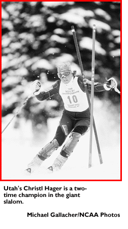 Overview: This should be a four-team race among defending champion Utah, Denver, Colorado and Vermont. Because of NCAA qualifier reductions that permit only three skiers from each team to compete per event, three other schools that are not deep enough to be regular-season powers -- New Mexico, Western State and Alaska Anchorage -- could work their way into the mix ... Utah coach Pat Miller termed last year's victory among the most rewarding of eight his team has won, because the Utes overcame injuries to three key skiers. This year's team faces obstacles of a different sort after losing 10 skiers from that squad, but a ninth title is not out of the question. The Utes' Alpine teams lead the way. Two-time giant slalom champion (1994 and 1995) Christl Hager dropped off the pace a bit last year, but hopes to return to form. In men's Alpine, Alain Britt-Cote will look to improve upon last year's second-place in giant slalom and third in slalom. In Nordic, Kristen Tjelle (ranked third in the West) leads the women, while twins Rune and Frode Kollerud (ranked second and fourth, respectively) lead the men ... Denver, winner of four of the eight individual events last year, returns several previous champions, including two -- Roberta Pergher and Geir Skari -- who were freshmen last year. Pergher unseated Utah's Hager in the 1996 women's slalom; Skari won the men's classical Nordic. Other former titlists are Narcisa Sehovic (1995 women's slalom) and Erik Roland (1994 men's giant slalom) ... Colorado won the championship in 1995 but had a disappointing 1996, at least by its high standards. The Buffaloes finished fourth and did not win an event. Six all-Americans from that team return. Caroline Gedde-Dahl, who placed second in the women's giant slalom and fifth in women's slalom, was the team's top 1996 finisher. Colorado gave early indications it would be a force this year, then placed third at the Denver Invitational while the team's five Alpine skiers were competing at the University World Games in Korea ... If top East region contender Vermont wins, one of the main reasons is likely to be Thorodd Bakken, who won the 1996 men's freestyle cross country race and was third in the classical event. He has been almost untouchable in Nordic races this season..