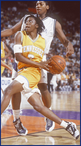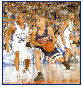 It was the year of the underdog at the NCAA Division I Men's and Women's Basketball Championships, beginning with the University of Tennessee, Knoxville, which captured its second consecutive women's title. Niya Butts (right) scored eight points in the title game for the Lady Volunteers, who were led by all-American Chamique Holdsclaw's 24 points. A youthful University of Arizona squad, led by Miles Simon (above, with ball), upset three No. 1 seeds on its way to the men's Final Four crown. See championships stories beginning on page 8.
