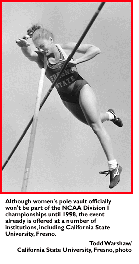 Beginning in 1998, they will soar to even greater heights with the debut of women's pole vault as an NCAA-sponsored event at Division I women's track championships.