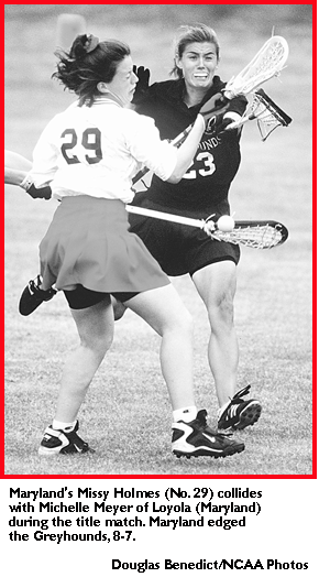 The semifinals featured the same type of tight, defensive battles as the final. Michelle Meyer and Johnson combined for five goals in the Greyhounds' 10-8 decision over North Carolina; Forbes, Cathy Nelson and Christine Jenkins had two apiece for Maryland in its 9-6 win over Temple.