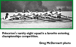 Overview: Champions will be crowned in three events during these inaugural championships. The top-ranked teams heading into the regatta are Brown in the New England region, Princeton in the Mid-Atlantic, Virginia in the Central and Washington in the West .... Brown tops its region in fours and is second in the I and II eights. The Bears' three varsity crews swept races against Harvard, Boston U. and Yale, but the varsity eight lost to Princeton by just over three seconds in the season opener .... Princeton's varsity eight also has beaten Rutgers, Cornell and Yale. The crew's only loss has been to Virginia at Lake Carnegie in late April .... Washington won its sixth straight Windermere Cup championship and is favored to defend its titles in the Pacific-10 Conference championships. The Huskies also swept races against Wisconsin in April. The Badgers are ranked second in the Central region .... Other teams that are highly ranked include Harvard, Rutgers and Washington State. In Divisions II and III, Williams, Connecticut College, William Smith, Ithaca, Marietta, Johns Hopkins, UC Davis and Mills all have either eights or fours ranked tops in their respective regions.