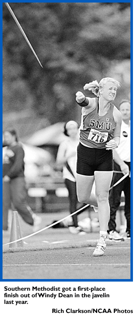 Overview: Before the 1997 indoor track championships, speculation was that LSU's long reign in that event would end. But the Tigers quickly dismissed that thinking, winning their fifth straight title. Now, as the outdoor track and field championships approach, word has it that the Tigers' streak in that event will end at 10, and once again the Tigers are working to prove otherwise. In its bid for a record 11th consecutive title, coach Pat Henry's squad will look to triple-jump standout Suzette Lee and its experienced and talented sprints corps -- led by Astia Walker (200-meter dash and 100-meter hurdles) and LaTarsha Stroman (400-meter dash). Lee is the defending triple-jump champion and enters the championships fresh off a collegiate-record-setting performance in the triple jump at the indoor meet. Walker and Stroman headline a sprints squad that includes Marita Hunt, Sadonna Thornton and freshman Peta-Gaye Dowdie. Hunt, Walker, Thornton and Dowdie also combined to post the nation's top qualifying mark in the 400-meter relay .... If a team does end LSU's reign, it likely will be Texas or Southern Methodist. UCLA should also be in the title hunt .... Runner-up in 1996, Texas boasts an impressive sprints corps led by Toya Brown, Nanceen Perry, Angie Vaughn and Donna Howard. Perry also teams with Sabrina Kelly, Kim McGruder and LaKeisha Backus to form Texas' top 400-meter relay. Nicole Devonish (long jump) leads the Longhorns' field-events team .... The third-place finisher in 1996, Southern Methodist places its title hopes with Windy Dean (javelin and hammer throws), Marika Tuliniemi (shot put) and Kajsa Berggvist (high jump) .... The Bruins, runners-up in 1995, are led by Amy Acuff, who is vying for a championships-record-tying third consecutive high-jump crown, and Suzy Powell (discus and javelin throws).