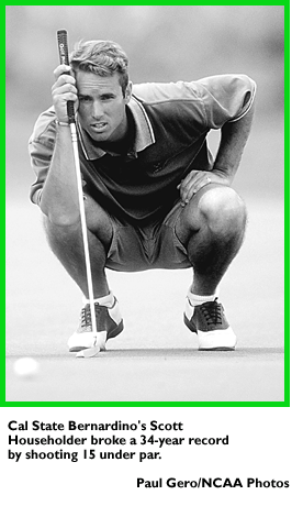 Records were shattered in the race for medalist as Scott Householder of Cal State San Bernardino outlasted North Florida's Felipe Aguilar with a final-round 69 to post a two-shot victory.