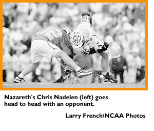 Nazareth would not have seen overtime had it not been for the five-goal, two-assist fireworks from attackman Trent Brown, who garnered most-outstanding-player honors. In addition to lighting up the scoreboard, the senior made the defensive play of the game.