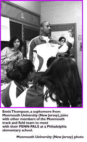 Set up by Anthony Bland of the National School and Community Corps, the program involved letter-writing, videotape exchange and finally face-to-face communication between members of the Monmouth track team and pupils at Alexander Wilson Elementary School in Philadelphia.