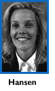 In addition to her collegiate career, Hansen has extensive national and international experience. She toured Canada with the Women's National Olympic Team and played professionally in Switzerland. In 1996, she competed for the National Volleyball Association regular-season champion Utah Predators.