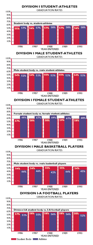 "I am pleased to see that we are continuing to achieve our goal of higher graduation rates," said NCAA Executive Director Cedric W. Dempsey. "The NCAA's efforts to increase academic standards for incoming student-athletes are having a positive effect, as illustrated by the consistent improvement in their graduation rates."