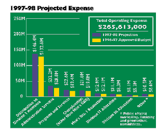 The budget features total operating expenses of $265.6 million, $181.1 million of which is devoted to Division I distributions and championships.