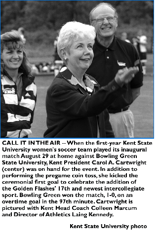 Ahead of the timesThere are now two women's professional basketball leagues, Sports Illustrated magazine has a special edition for women, and Conde Nast is about to follow suit. But where were all of those enterprises 25 years ago when the National Association of Collegiate Directors of Athletics was publishing its first women's edition of the National Directory of College Athletics? That directory was a pioneer publication that sought to fill the near void of information on women's athletics programs. Improvements came in 1991 when Collegiate Directories purchased publishing rights to the men's and women's books. "Since taking over the publishing duties, we have put a lot of effort into raising the women's directory to the level of excellence that our men's directory enjoys," editor Kevin Cleary said. "We have made the book much larger and more comprehensive, adding well over 100 pages of information, and we give it the same type of spiral binding. "It should be noted that the circulation of the women's directory is growing at a faster rate than the men's." Cleary noted that the Silver Anniversary women's edition includes the article "25 Significant People and Events in Collegiate Women's Athletics Over the Last 25 Years." Not surprisingly, Title IX was voted most significant. By the way, Collegiate Directories has a new World Wide Web site: www.collegiatedirectories.com. Among other things, the site offers advice for parents of high-school recruits, updates for the 1997-98 directory and a searchable database of college sports nicknames. Navy's lethal weaponRunning back Chris McCoy of the U.S. Naval Academy tied an NCAA record when he scored touchdowns on three consecutive rushes in the Midshipmen's September 13 victory against Rutgers, The State University of New Jersey, New Brunswick. McCoy scored on runs of two, nine and two yards in the first quarter against Rutgers. The only other player to accomplish the feat was Tiki Barber of the University of Virginia, who did it last year on runs of 16, 26 and 12 yards against the University of Texas at Austin. McCoy now has two NCAA records. He also has the most yards rushing by a player in the first game of his career with 273 against Southern Methodist University in 1995. -- Compiled by David Pickle MilestonesUniversity of Georgia women's volleyball coach Jim Iams reached the 200-victory milestone August 30 when the Lady Bulldogs defeated Radford University, 3-0. He has 201 victories in eight years at the helm of the Georgia volleyball program. Kim Fischer, Bluffton College women's volleyball coach, attained her 500th career win September 6 as the Lady Beavers defeated Lake Forest College. Fischer is in her 19th year at Bluffton, where she also has coached the basketball and softball teams. Pepperdine University head women's volleyball coach Nina Matthies posted career win No. 250 September 7 when the Waves defeated the University of New Mexico. Matthies has a record of 250-194 record in 15 seasons at Pepperdine. Williams College men's soccer coach Mike Russo collected his 200th win at Williams on September 17 when his Ephs defeated Skidmore College in the season opener for both teams. Russo has a 200-57-30 record in 19 years as Eph mentor. Linda Delk, head women's volleyball coach at the University of Northern Colorado, won her 600th match after 22 years at the helm of the Bears. During Delk's tenure, the Bears have had 11 30-win seasons and three 40-win seasons. Colgate University head men's soccer coach Mike Doherty picked up his 100th career win September 6 in a victory over the U.S. Naval Academy. Marilyn Nolen, Saint Louis University head women's volleyball coach, recorded her 700th career victory September 20 in a victory over Western Illinois University. The win brought her record to 700-267-12 in 26 seasons. |