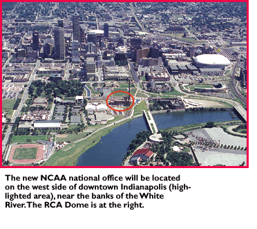 The new building site is on the west side of downtown Indianapolis on land currently owned by Indianapolis Power and Light. At the moment, plans are to complete demolition of the structures on the site by early next year and to break ground on the new headquarters and NCAA Hall of Champions by late winter or early spring. Depending on how long construction takes, the NCAA will occupy the new facility in either August 1999 or the spring of 2000.