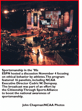 The program, "Sportsmanship in the '90s: Is Winning the Only Thing?" featured 16 panelists, including NCAA Executive Director Cedric W. Dempsey. In addition to the panel discussion, the examination of sportsmanship also included a segment of "Outside the Lines," a series in which ESPN probes sports-related issues.