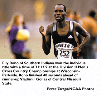 Elly Rono of Southern Indiana won the individual championship, covering the 10,000-meter course in 31 minutes, 13.9 seconds.