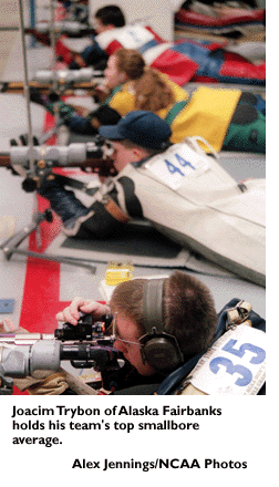 Overview: West Virginia has won all but three team championships since 1983, including the last three in a row, but this year the story has been Alaska Fairbanks, which won in 1994. The Nanooks' qualifying scores of 4,698 (smallbore) and 1,566 (air rifle) were the highest in years, easily bettering the defending champions' 4,625 and 1,556. Both of the Nanooks' qualifying scores would set championships records if shot at the national meet. The records are 4,683, set in 1995 by West Virginia, and 1,563, set in 1995 by Alaska Fairbanks. Freshman Dan Jordan led Alaska Fairbanks in individual qualifying with scores of 1,180 and 394. Sophomore Joacim Tryboom owns the team's top smallbore average .... West Virginia posted qualifying scores of 4,625 (smallbore) and air rifle (1,556). The relatively low smallbore score could endanger the Mountaineers' qualifying chances in that discipline. Brian Fuhrman, who finished sixth in smallbore last year, led West Virginia in both qualifying rifles. The Mountaineers also return last year's individual smallbore winner, Marcos Scrivner, who also shot the highest air rifle score in the team competition in 1997. Talmadge Wilkins, who shot the highest smallbore score in the team competition last year, also returns .... Marra Hastings of host Murray State is back to defend the individual air rifle championship she won as a freshman. The Racers also have the Ohio Valley Conference's most valuable shooter, Ken Hicks, who has pushed Hastings in air rifle .... Another smallbore individual to watch is Wyoming's Jeff Odor, who finished second last year. In air rifle, a cast of women join the battle to knock off Hastings -- Mary Elsass of Kentucky (fourth last year), Kathy Schuneman of Jacksonville State (fifth) and Norwich's Emily Caruso (sixth).
