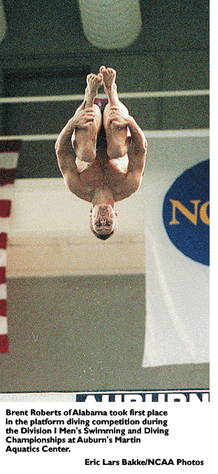 Alabama junior Brent Roberts won the platform diving event. Rio Ramirez of Miami (Florida) was named diver of the year and his coach, Randy Ableman, was named diving coach of the year after Ramirez won the one-meter event and finished second in the three-meter event.