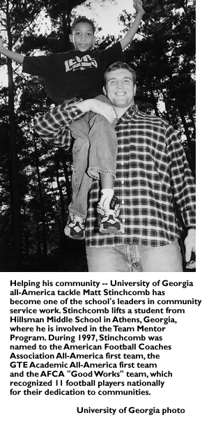 Town manager Cal Horton confirmed that the council believed local television viewers were likely to choose the Tar Heels' contest over an examination of the public housing department's budget. "There was a general recognition that a lot of people in our community would choose to watch the game rather than the council budget work session," Horton told the Chapel Hill Herald. City officials emphasized that temporarily delaying the meeting would not result in any delays in the city's budget process. Those who run for office in North Carolina also understand the electorate's priorities. State House candidate Moses Carey Jr. assured supporters that they wouldn't miss the men's regional final matchup with Connecticut if they attended one of his campaign get-togethers. Ads for Carey's event, which started an hour after the game, promised that television sets would be available. "After all," Horton told the Herald, "this is the best college town in America. And we do take our basketball very seriously." Perhaps that devotion provides an extra boost. The North Carolina women's basketball team made it to the Elite Eight before losing, 76-70, to defending national champion University of Tennessee, Knoxville. The men's basketball team earned a trip to the Final Four before losing to the University of Utah, 65-59, in the semifinals. Utes protect streakThe 10-time national-champion women's gymnastics team at the University of Utah has gone for 19 years without a regular-season loss at home. The Utes wrapped up another unbeaten year in Salt Lake City March 14, when they defeated No. 11-ranked Oregon State, 195.875-190.100. Utah has won an unprecedented 145 straight regular-season meets in the Huntsman Center over the last 19 years. Their last loss was February 20, 1979, to California State University, Fullerton. Utah freshman Shannon Bowles, a U.S. National Gymnastics Team member and winner of a team-high 13 events for the Utes this year, wasn't even born the last time Utah lost a regular-season home contest. While there are probably many reasons for this incredible streak, the fans can claim some of the glory. Utah averaged 10,211 spectators this year, winning the national women's gymnastics attendance race for the 15th time in 16 years. This year was also the fifth season that Utah averaged more than 10,000 fans a meet in the Huntsman Center. The Utes have filled the 15,000-seat facility on four occasions, including 5,238 against Cal State Fullerton in 1991 -- a record in collegiate women's gymnastics. Coach hits the booksNational Basketball Association legend Clyde Drexler recently was named head men's basketball coach at his alma mater, the University of Houston, where he signed a five-year contract. An unusual clause in his contract makes Drexler both a coach and a student. At his request, a clause in the contract calls for him to complete courses for his degree in communications. He needs 43 hours. "Getting a degree is a promise I made to Mom 15 years ago," Drexler told USA Today. "One of the things I've missed throughout life is the peace of mind knowing I completed my degree. It's going to be a challenge to coach and take classes, but I'm looking forward to it." Oscar-winning acceptanceBrian Phelan, the starting catcher on the baseball team at Southern Illinois University at Carbondale, always has thought his mom is a star. Now the Academy agrees with him. Phelan's mom, Donna Dewey, recently won the Oscar for best short documentary with her film, "A Story of Healing." Phelan and many of his teammates on the Salukis' squad were watching from Carbondale, Illinois, as his mom accepted the award on the national Academy Awards telecast. At the end of her acceptance speech, Dewey dedicated the film to her son. Then, fulfilling a promise she had made to him if she won, she shouted, "Go Salukis!" Much of Hollywood is abuzz wondering what on earth she meant, but sports fans at Southern Illinois are proud of the mention of their mascot, an egyptian hunting dog. -- Compiled by Kay Hawes |