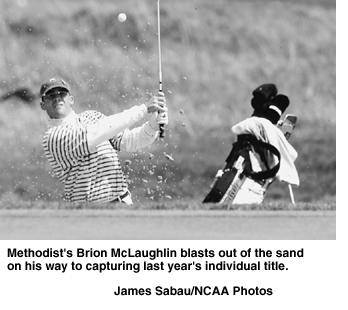 Overview: Methodist is top-ranked and has won seven of the last eight championships--and this year doesn't look to be much different. This year's team has youth and experience. Freshman Chad Collins heads a Methodist lineup that features last year's individual champion Brion McLaughlin and Chris Eaves, who finished second at this year's Dixie Intercollegiate Athletic Conference Championship. Methodist, winners of six consecutive conference titles, has six first-place finishes in 10 tournaments this season .... Challengers include Greensboro, who finished second to Methodist in the DIAC championships. David Horne took home individual title honors for Greensboro. This year mirrors last year in that Methodist and Greensboro are ranked No. 1 and No. 2 and finished that way in the DIAC championships .... Other contenders include Guliford, Allegheny, Skidmore and Otterbein.