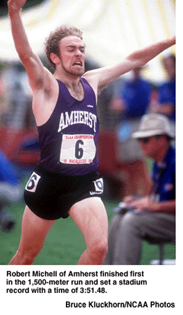 Repeat champions also included Rich Dixon of Rowan (400-meter dash), Brett Altergott of Wisconsin-La Crosse (3,000-meter steeplechase), Jamie Brewster of Colby (hammer throw), Joe Bedard of Lynchburg (decathlon) and the Lincoln (Pennsylvania) relay team of Robert Woolbright, Larry Lyerly, Roshawn McMillian and Steve Mitchell, who guided the Lions to their fourth consecutive crown in the event.