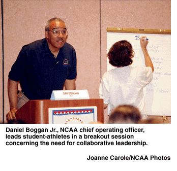 Many student-athletes appeared to enjoy the remarks of Dave Gavitt, the chairman of the board of trustees at the Naismith Memorial Basketball Hall of Fame. A former student-athlete himself, Gavitt spoke on "Accepting the Responsibility of Leadership."
