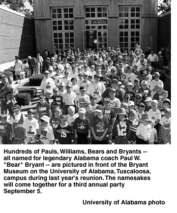 If so, you may want to join the Pauls, Williams, Bears and Bryants from all across the country who will converge on the University of Alabama, Tuscaloosa, campus this fall to attend the Paul W. Bryant Museum reunion party honoring those named for the Alabama icon.
