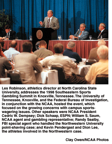 The administrators gathered to learn how and why student-athletes gamble and what they can do on their campuses to combat the problem. The summit was hosted by the University of Tennessee, Knoxville, and the Federal Bureau of Investigation.