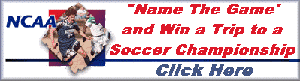 So, the NCAA and Nabisco have joined together to create a "Name the Game Contest." The contest, which runs from September 1 through October 16, will culminate with a grand-prize winner receiving a trip for two either to the 1998 men's championship in Richmond, Virginia, December 11 and 13 or the 1998 women's championship December 4 and 6 in Greensboro, North Carolina. The trip includes airfare, hotel accommodations, rental car and game tickets. A second-prize winner will be presented with a $500 shopping spree from Eurosport, and 50 third-place winners will receive a Brine soccer ball, the official ball of the NCAA soccer championships.