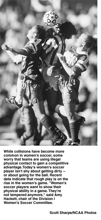 Amy Hackett, chair of the Division I Women's Soccer Committee and associate athletics director at the University of Utah, said she has witnessed increased physical play in her seven years at the Division I Women's Soccer Championship games.