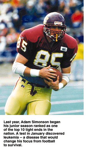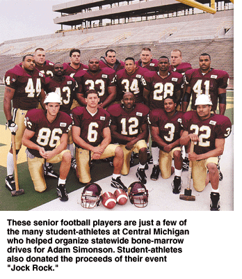 And that's just what happened this past year at Central Michigan University when junior tight end Adam Simonson found out he had leukemia. He quickly discovered that he had the assistance of his teammates, his fellow student-athletes, the athletics department and the entire university community.